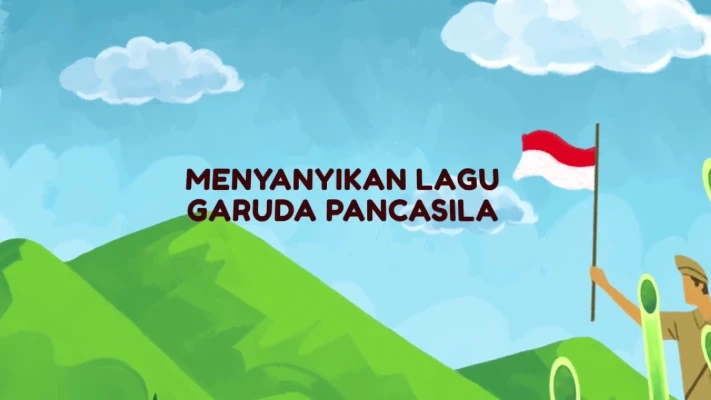 Konten bahan ajar video Animasi untuk PMM tentang Menyanyikan Lagu Garuda Pancasila.